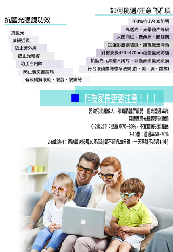 ●抗藍光也抗UV,觀看3C產品不受藍光傷害