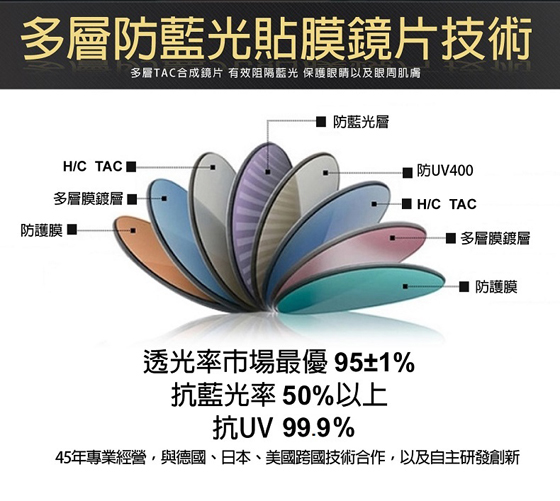 抗藍光50?上/抗UV 100??光率95±1?span>