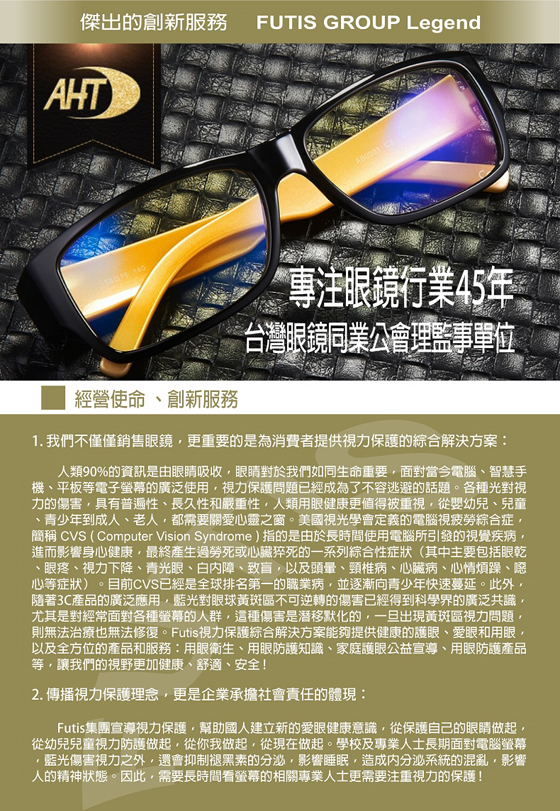 商品名稱:【FUTIS】AHT抗藍光眼鏡夾片/平光眼鏡